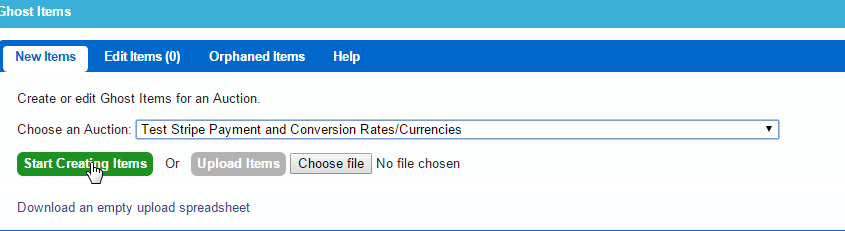 - You can bulk create items by completing a CSV file and uploading that to the auction