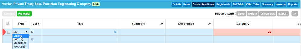 - Create items of type Listing and select Purchase Option of Make_Offer
