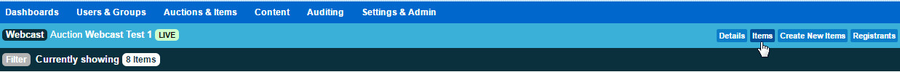 - From the top right hand menu select the Items link