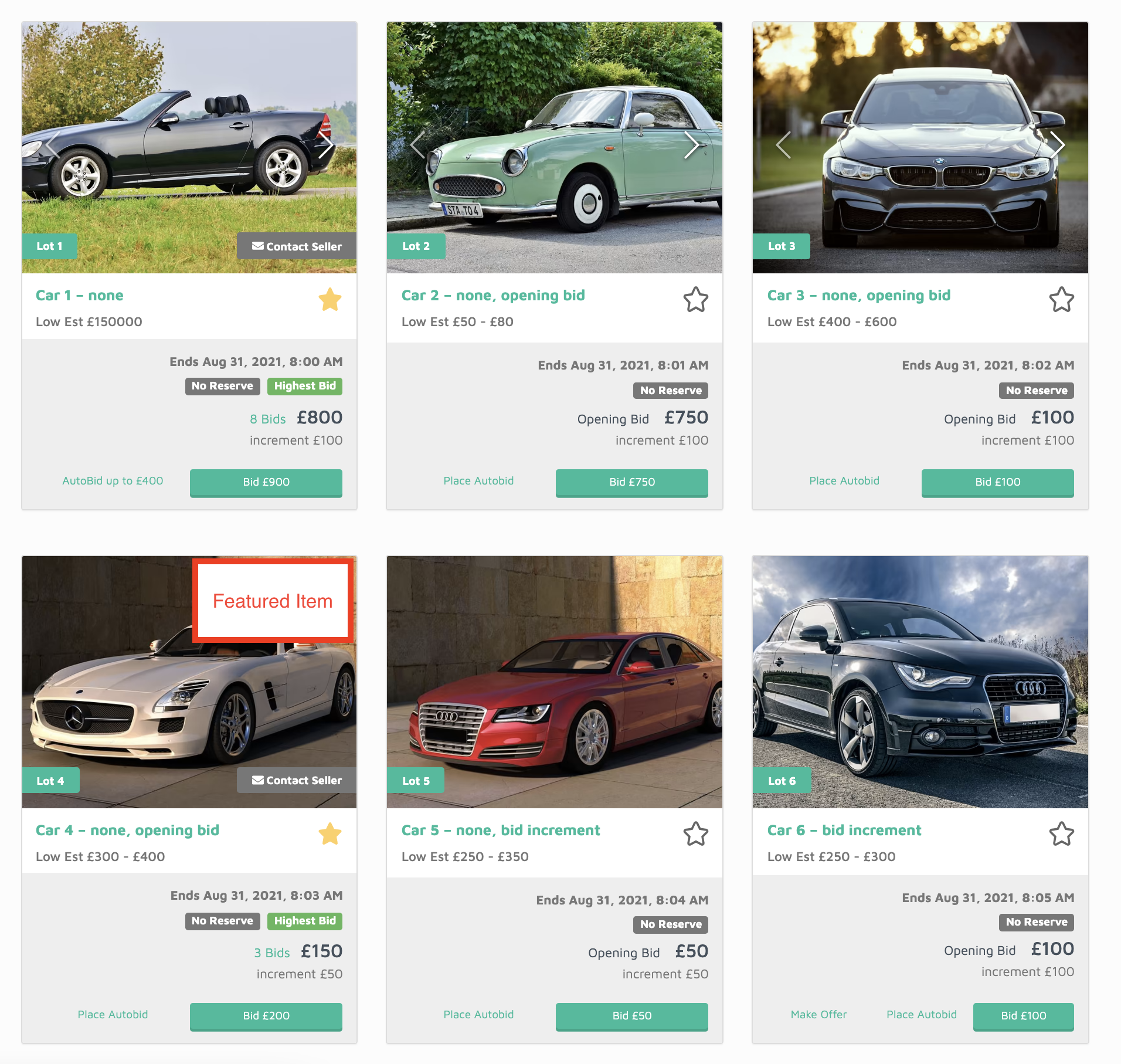 Featured items appear first in the Auction Calendar view: