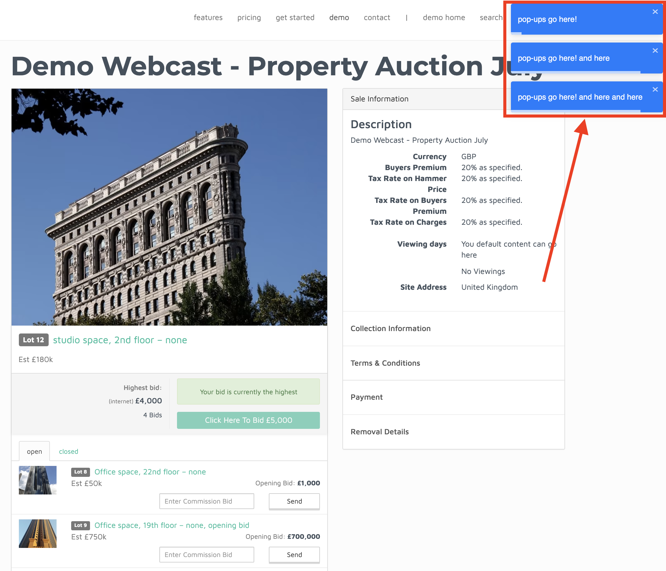 Popup messages can only be sent when Item is selected and will remain visible for a short time or until the User clicks the 'x' in the Popup message