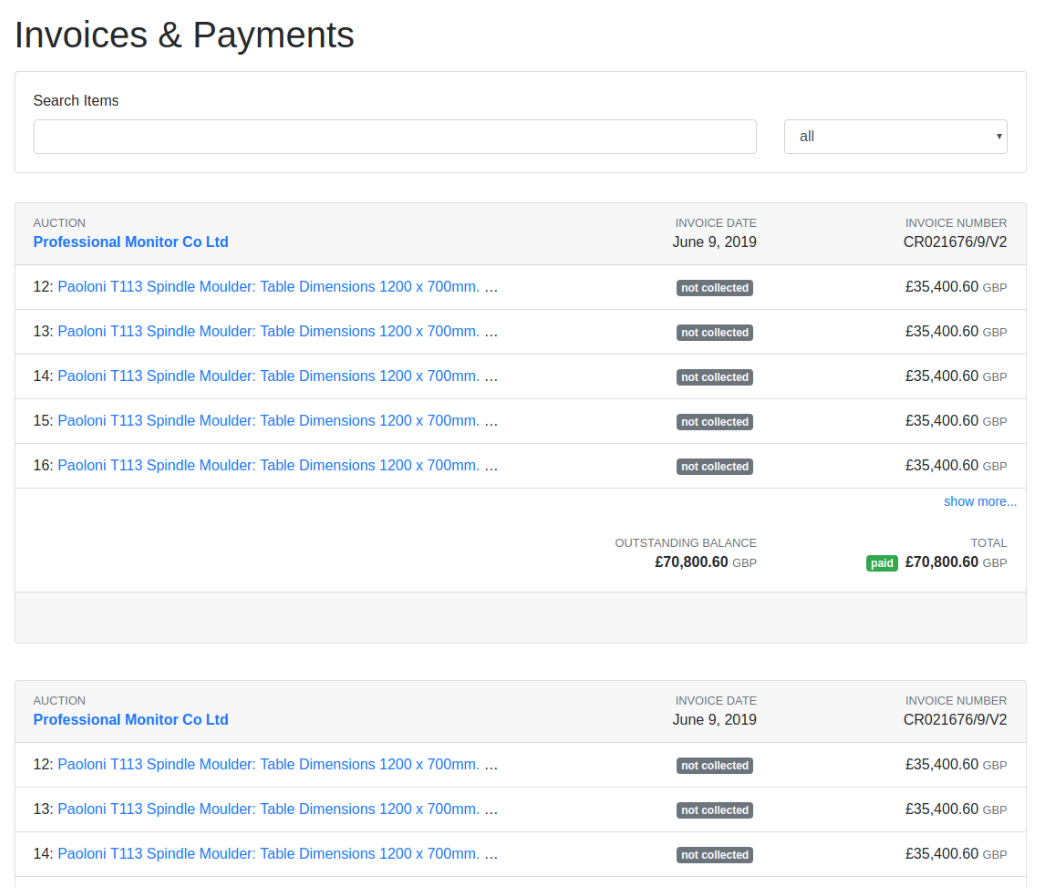As of BidJS V2.0 (release 04-07-19), users will be able to view basic information about their outstanding invoices via our software. When you hit Send to Buyer, it will email the user prompting them to login in order to view them. (Please note that our documentation refers to this features as My Invoices, but you may have customised the My Invoices text in various places across your own site).